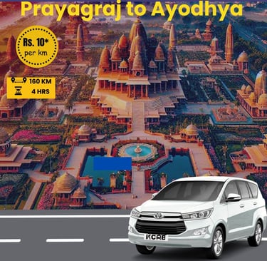 Book your cab today for a seamless travel experience from Prayagraj to Ayodhya, whether you're heading for the Kumbh 2025 or to catch a flight from Ayodhya Airport!